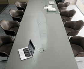 Il sistema FLAT si declina in molteplici soluzioni dimensionali, con proposte di eccezionale lunghezza, con struttura in alluminio e piani in vetro laccato, acrilico e marmo.